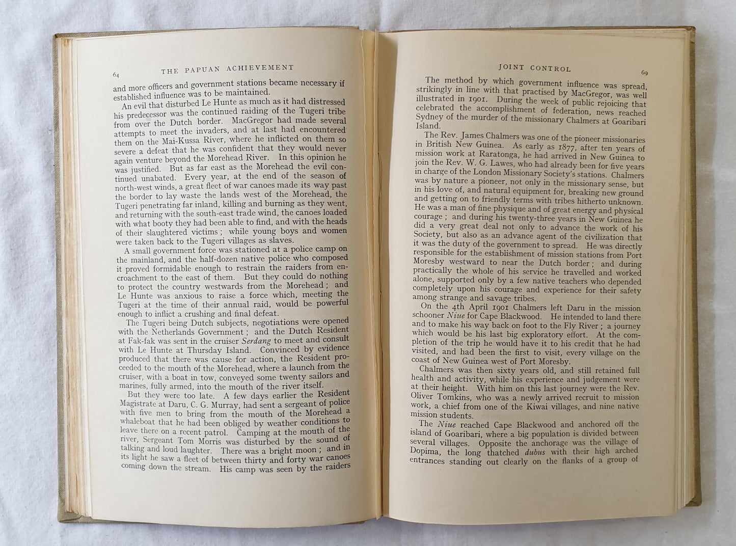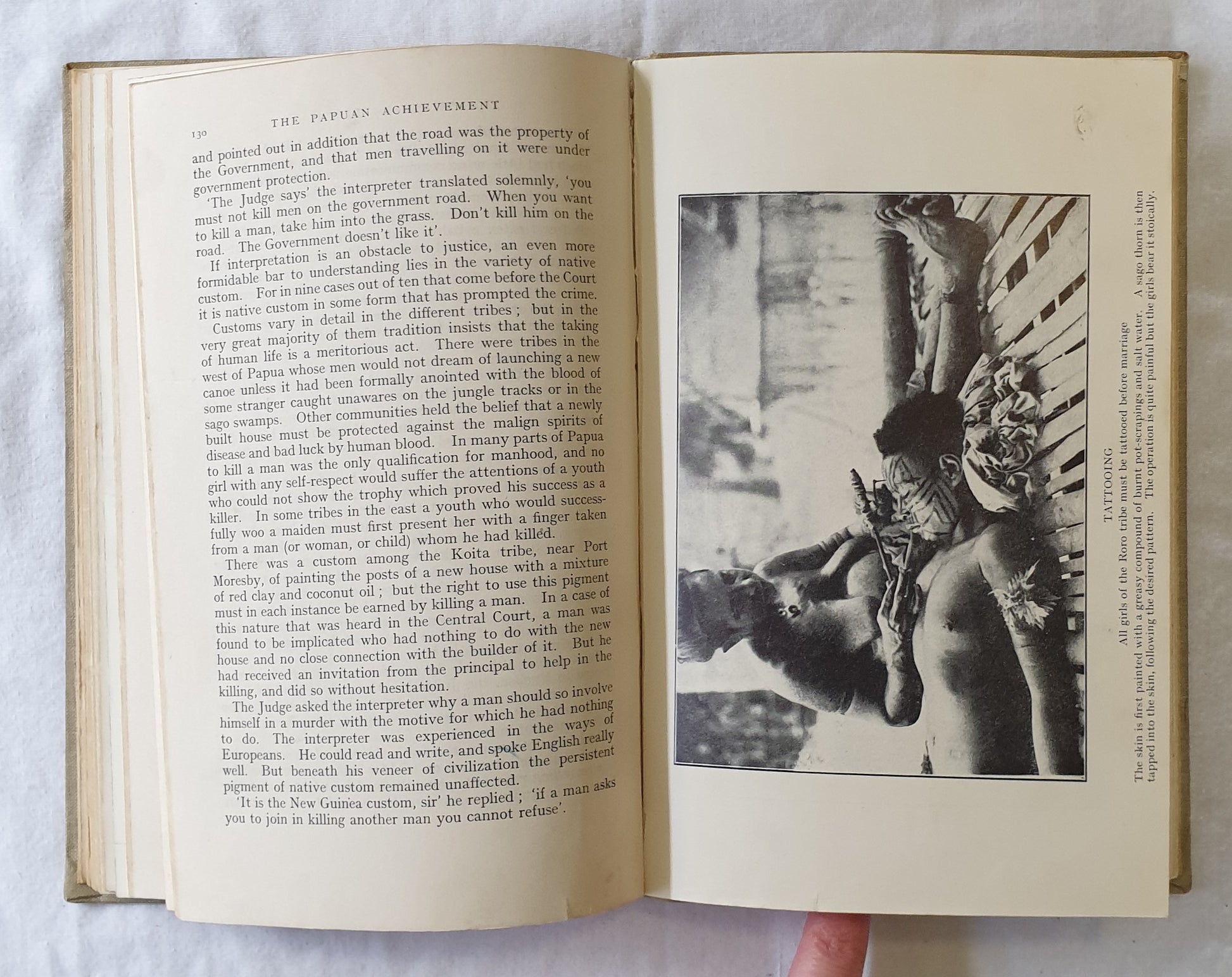 Melbourne University Press, 1942, [First Edition], black and white photographic frontispiece, black and white photographic plates, fold-out map, hardcover