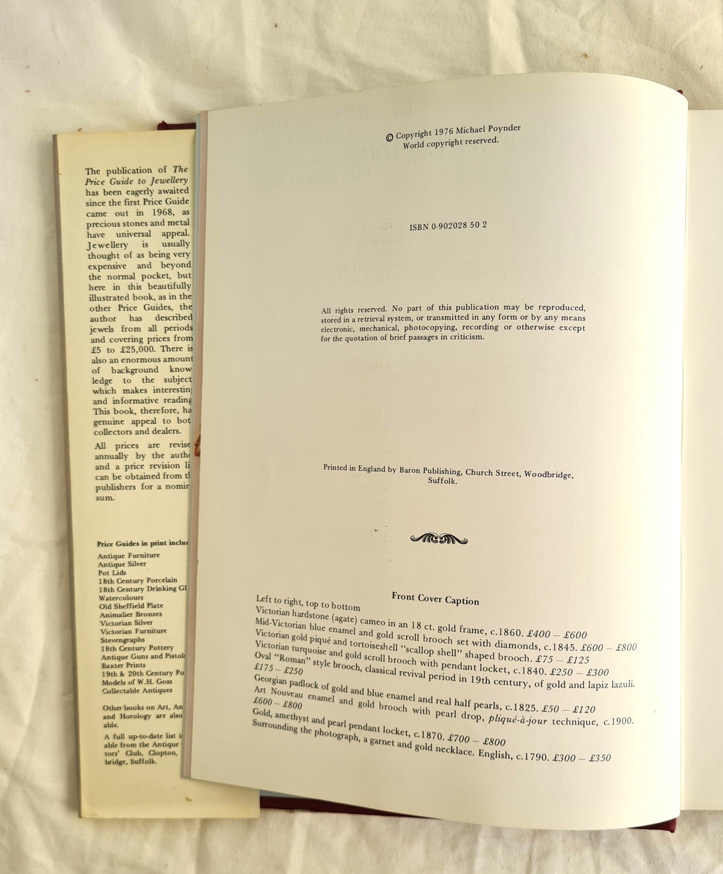 “This publication of The Price Guide to Jewellery has been eagerly awaited since the first Price Guide came out in 1968, as precious stones and metal have universal appeal. Jewellery is usually thought of as being very expensive and beyond the normal pocket, but here in this beautifully illustrated book, as in the other Price guides, the author has described jewels from all periods and covering prices from £5 to £25,000. There is also an enormous amount of background knowledge to the subject, which makes interesting and informative reading. This book, therefore, has genuine appeal to both collectors and dealers.”