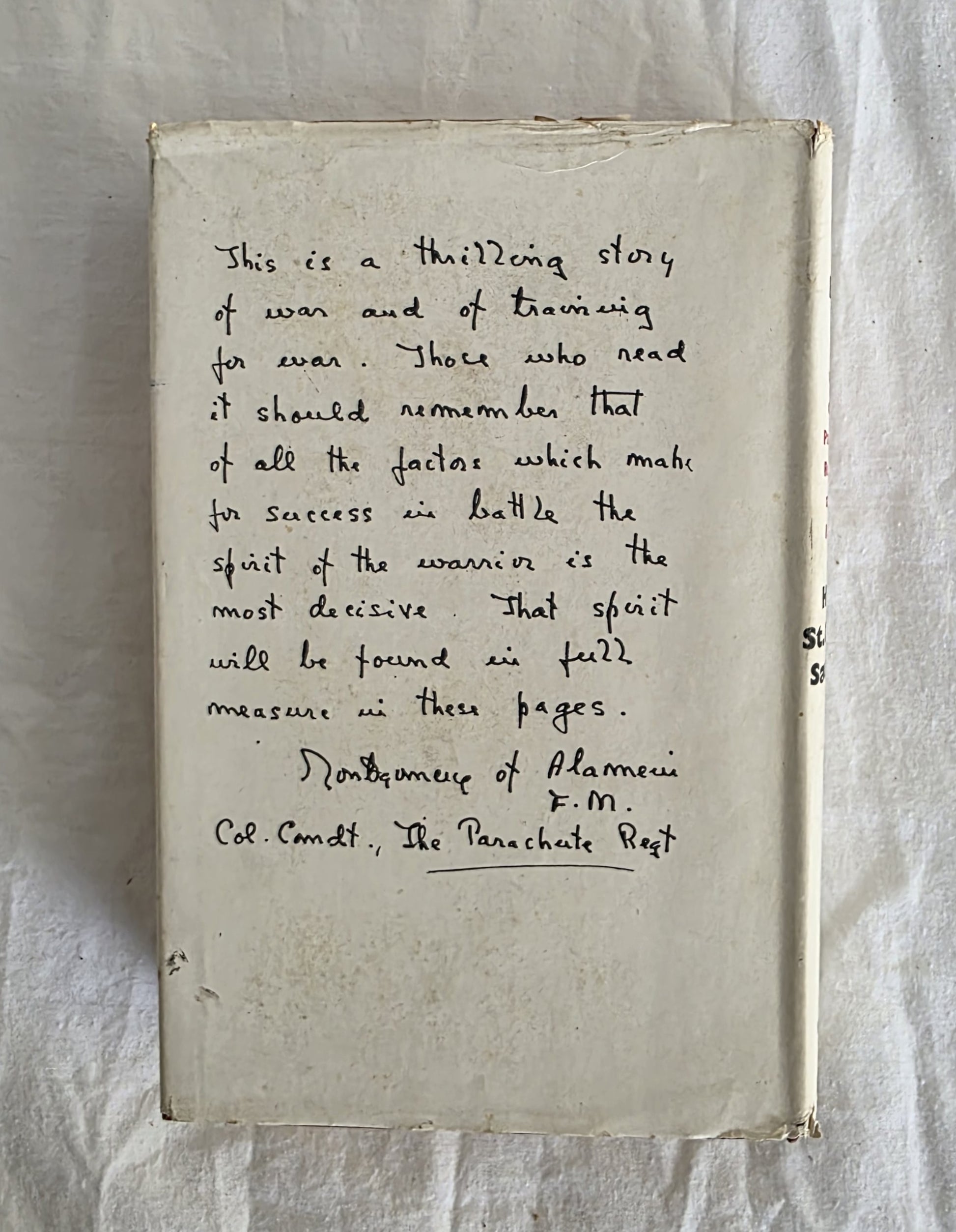 “This is the story of the Parachute Regiment, of the officers, non-commissioned officers and men, drawn from almost every unit of the British Army, who volunteered to reach the field of battle by a novel and unique method. They were the first to wear the Red Beret, and to ern for themselves the name of the ‘Red Devils’, bestowed upon them in North Africa by an enemy who had good cause to fear their prowess. They were not however, the only members of the British Army to wear this distinguished headgear. Those who dropped with them belongings to the Royal Engineers, the Royal Admiralty, the Royal Corps of Signals, the Royal Army Service Corps and the Royal Army Medical Corps and those who went to battle in gliders also wore it and added lustre to its fame.”