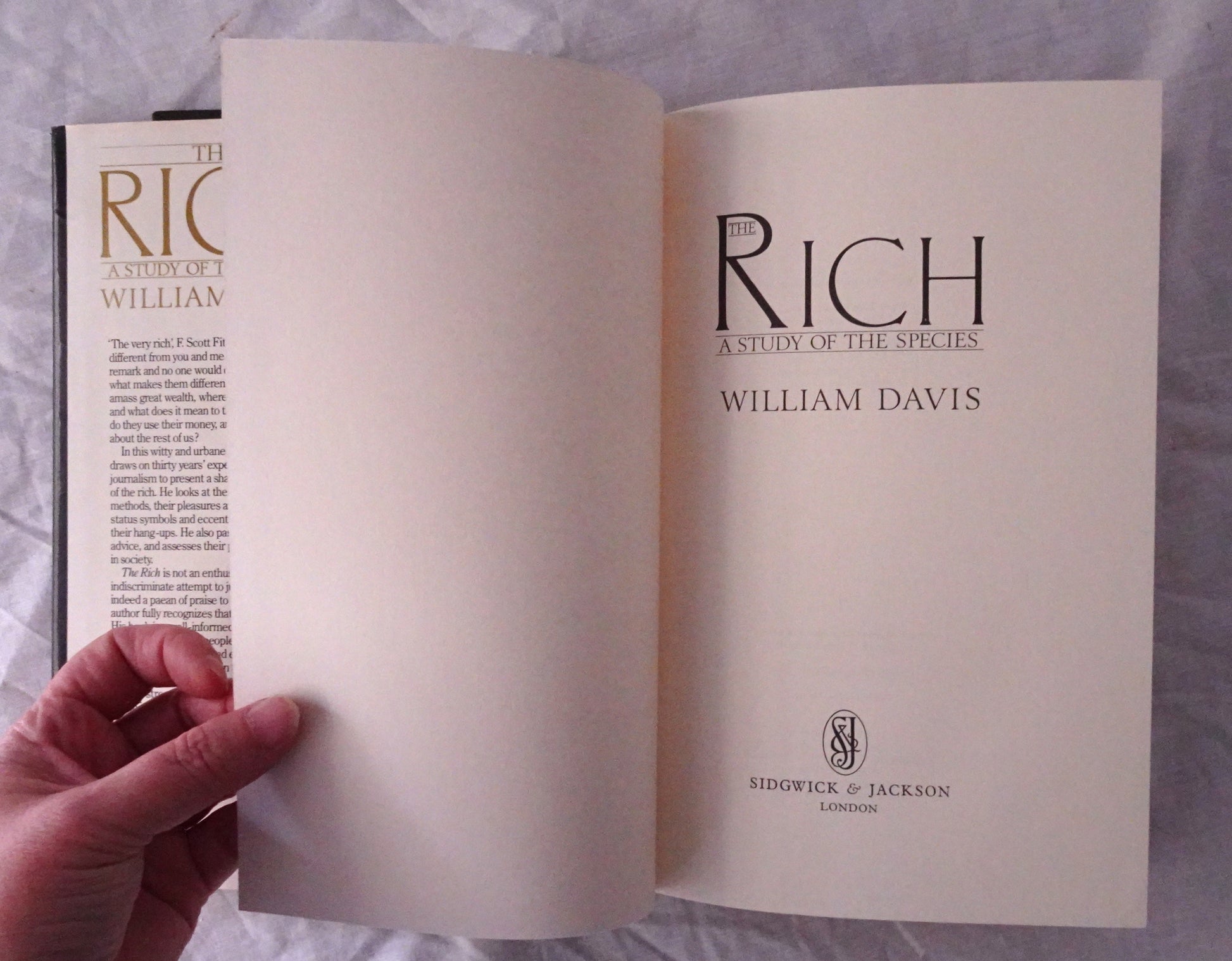 “In this witty and urbane study, William Davis draws on thirty years’ experience in financial journalism to present a sharply observed portrait of the rich. He looks at their ambitions and methods, their pleasures and ego trips, their status symbols and eccentricities, their fears and their hang-ups. He also passes on some of their advice and assesses their present and future role in society.