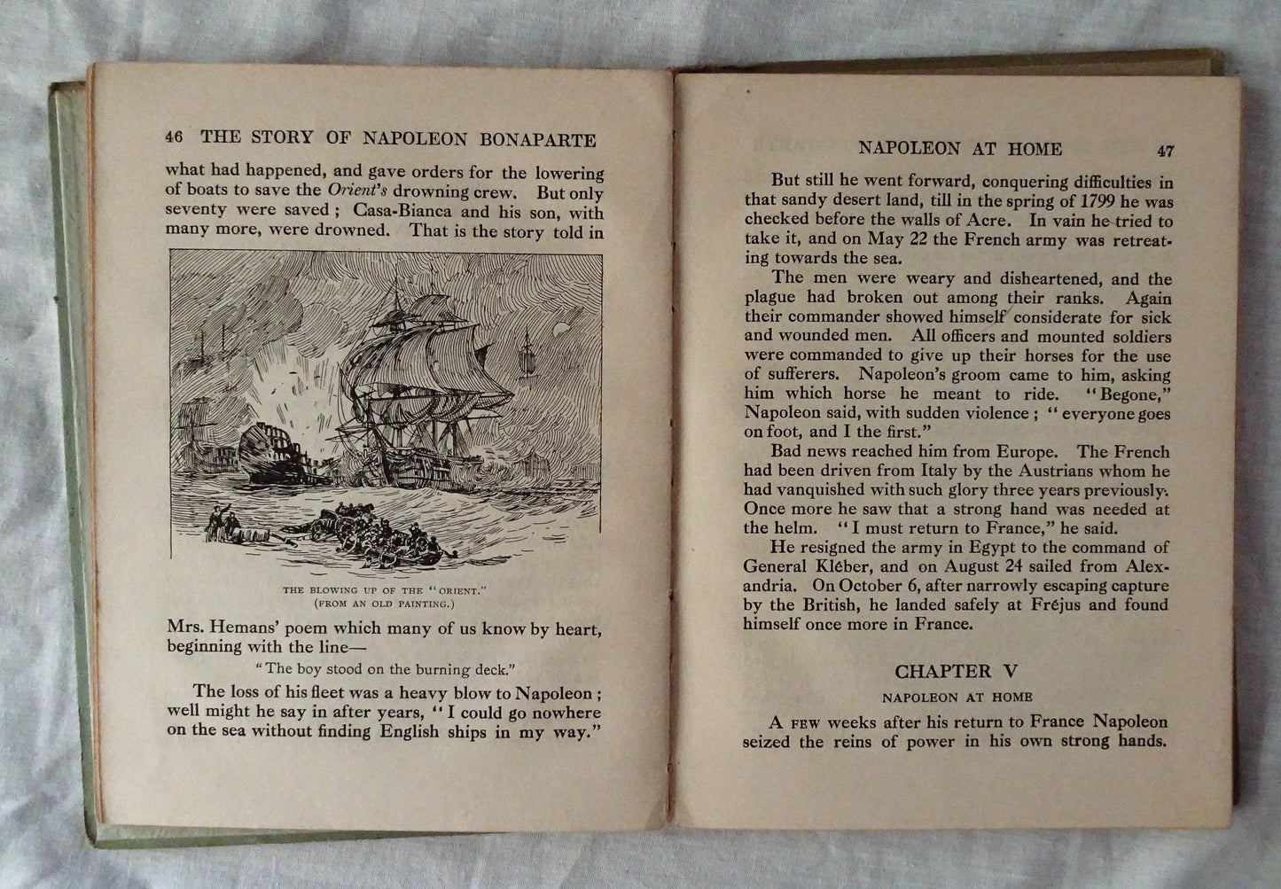 “The story of Napoleon is that of a man perhaps more wonderful than any other whom the world has seen. He was not even a Frenchman, though we seem to think of him as such; he was a Corsican, a man of the Italian race. Though he came of an old family his parents were quite undistinguished and comparatively poor. Yet by the time that he was thirty years of age he had restored order in France, which for many years had been distracted by the atrocities and terrors of the Revolution. Five years later he was chosen as her Emperor.”