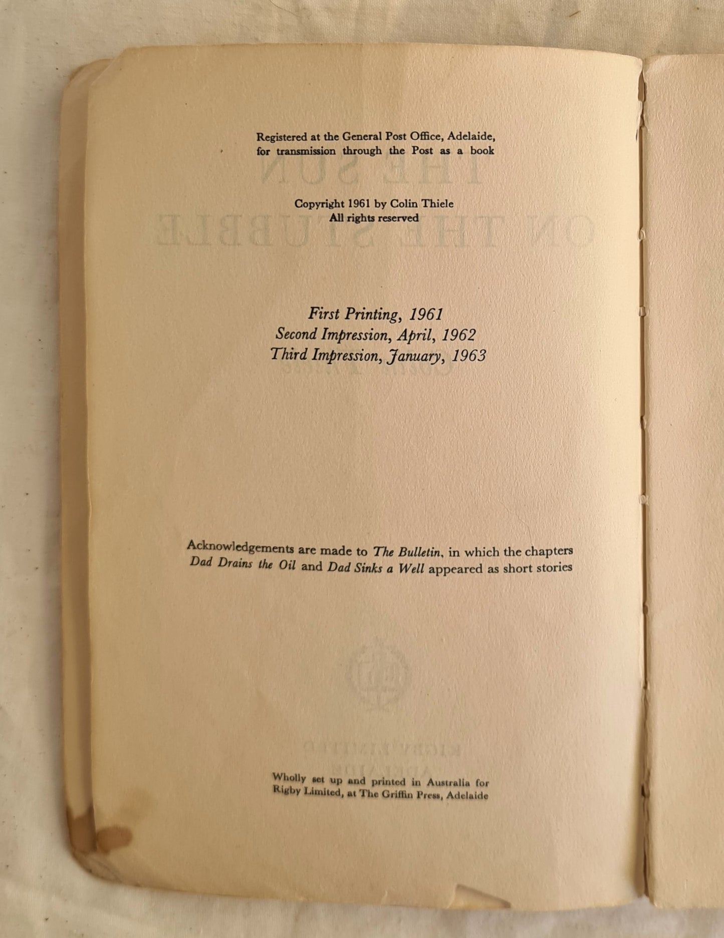 The Sun on the Stubble by Colin Thiele (endpaper notes)
