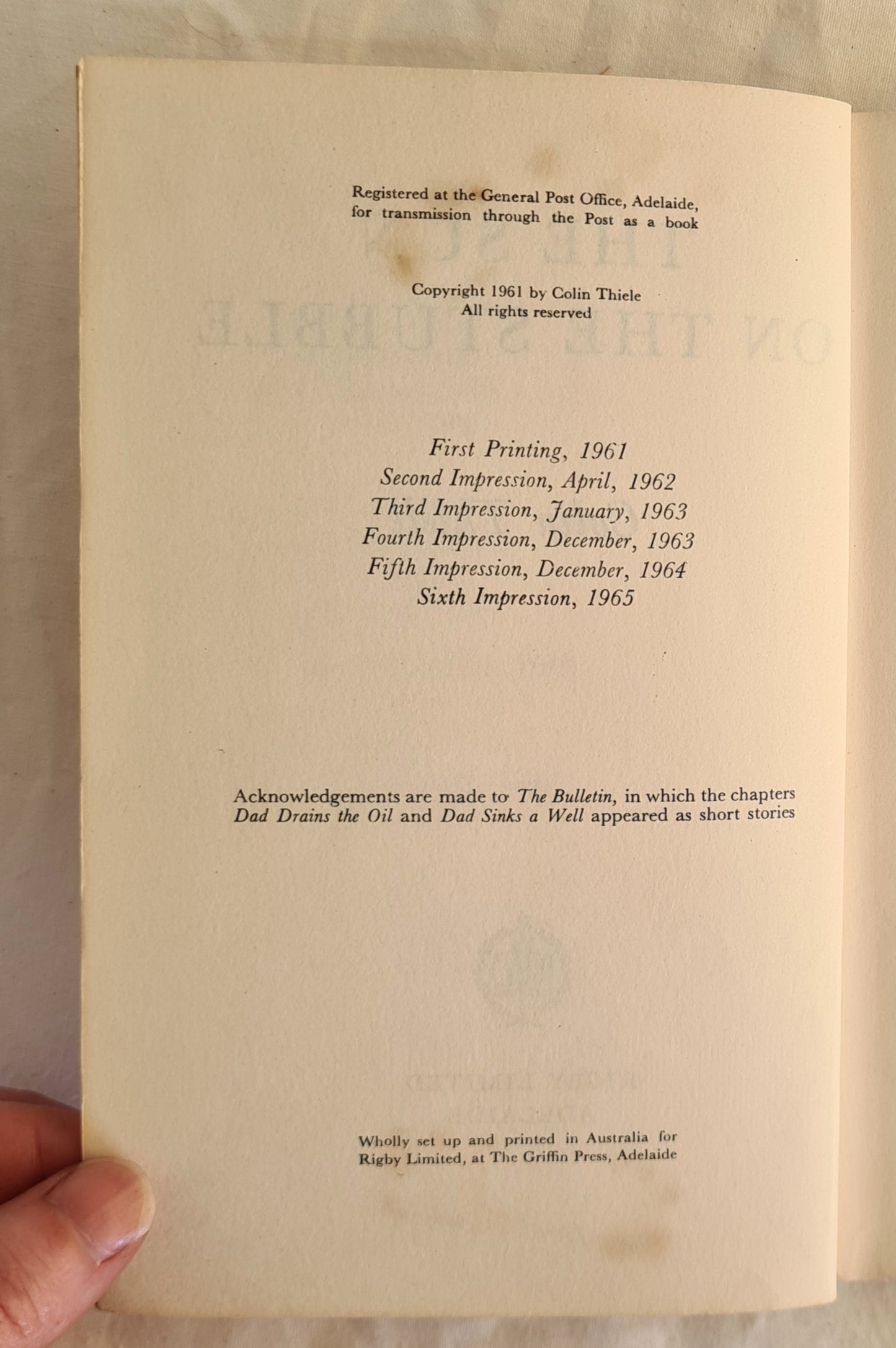 The Sun on the Stubble by Colin Thiele (inscribed cover)