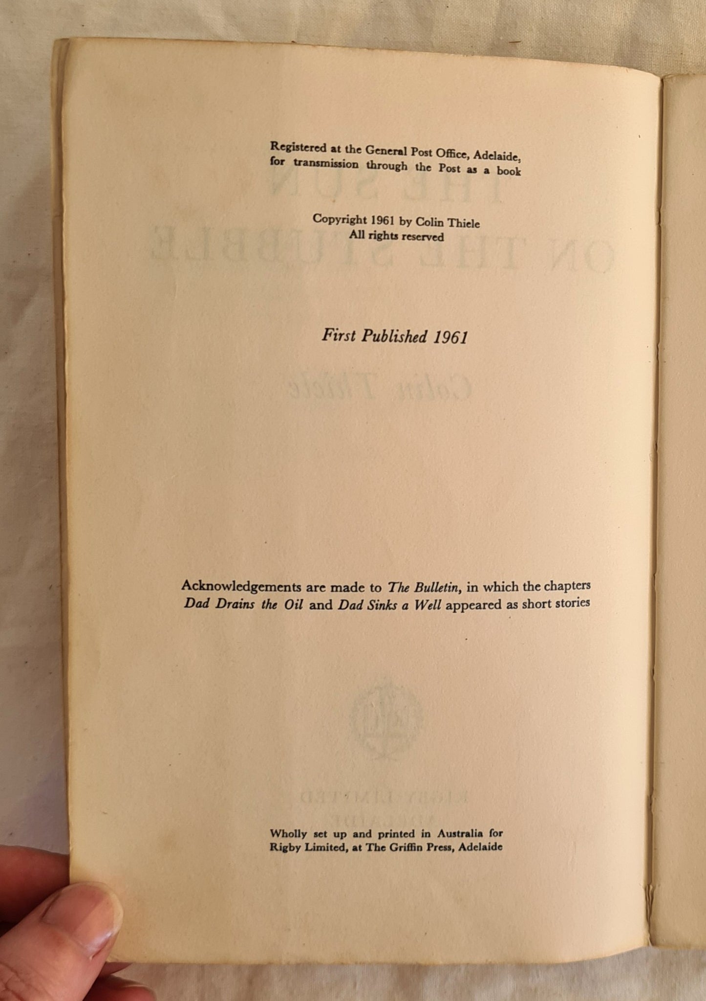 The Sun on the Stubble by Colin Thiele (tape residue)