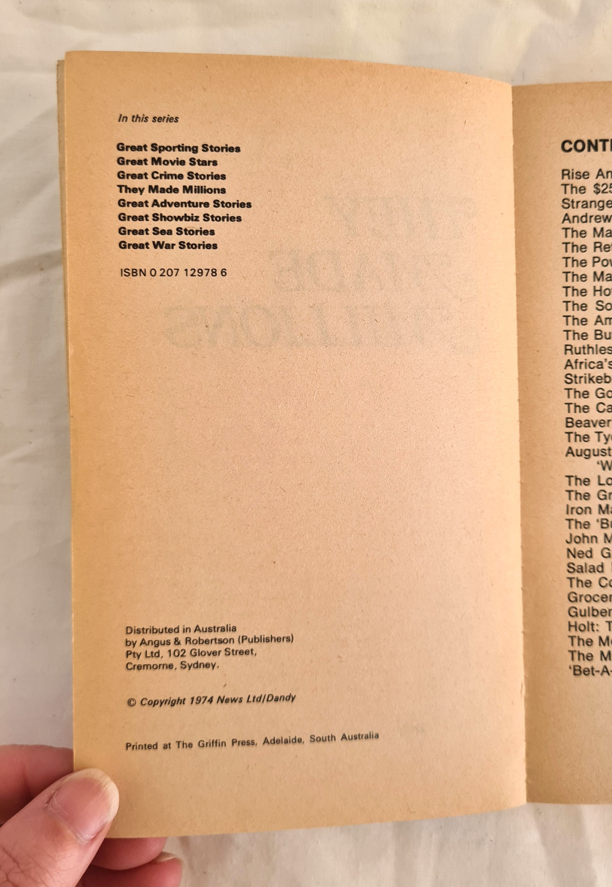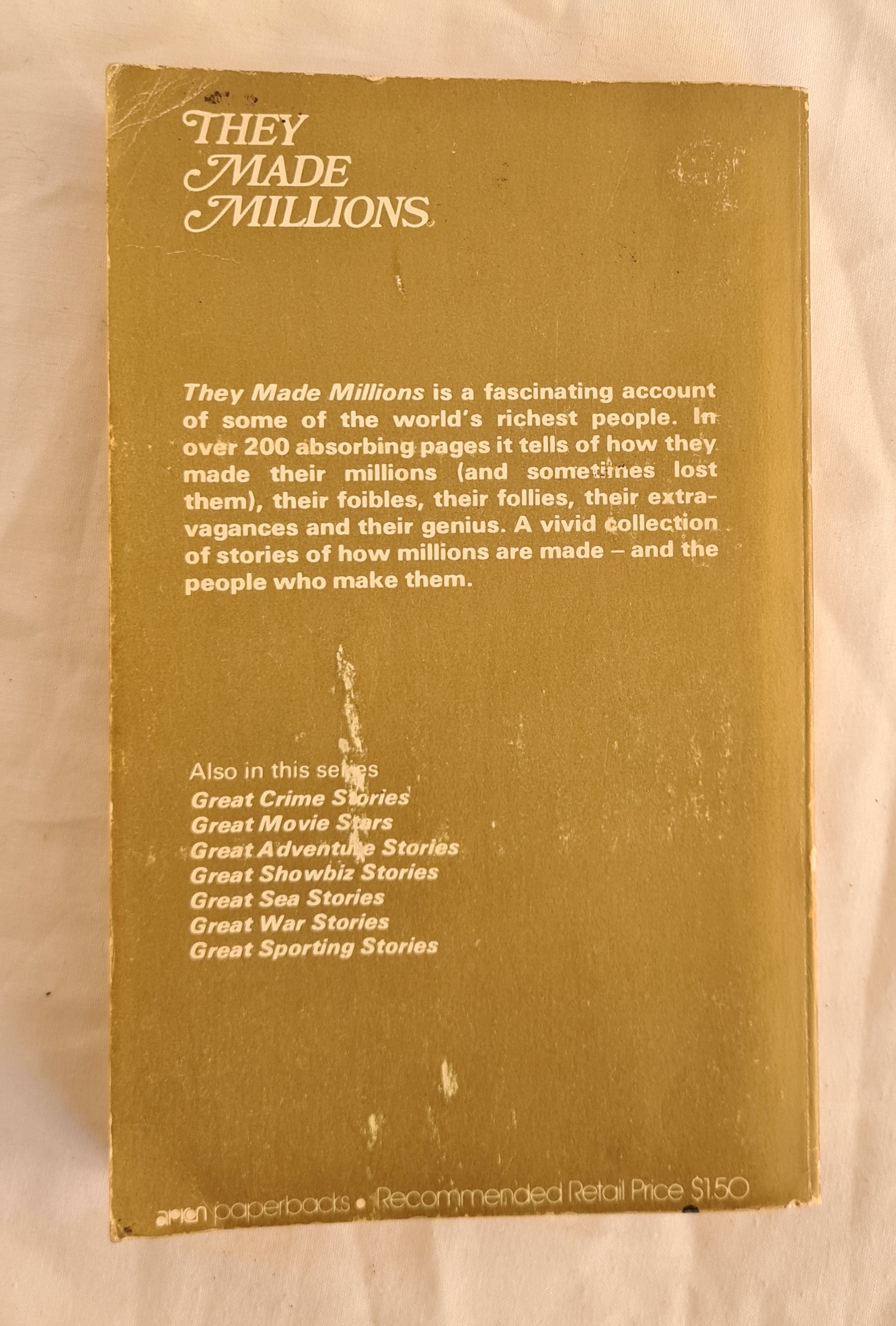 “They Made Millions is a fascinating account of some of the world’s richest people. In over 200 absorbing pages it tells of how they made their millions (and sometimes lost them), their foibles, their flies, their extravagances and their genius. A vivid collection of stories of how millions are made – and the people who make them.”