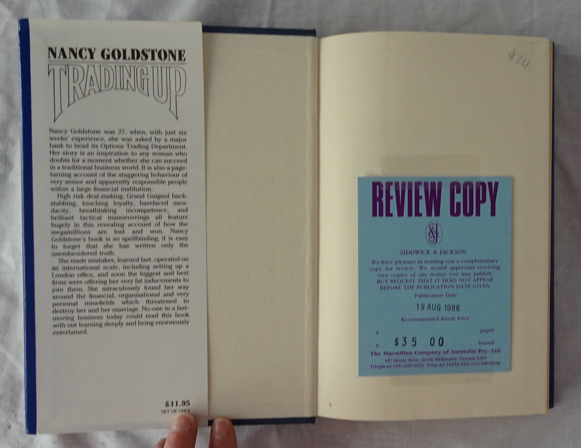 “Nancy Goldstone was 27, when, with just six weeks’ experience, she was asked by a major bank to head its Options Trading Department. Her story is an inspiration to any woman who doubts for a moment whether she can succeed in a traditional business world. It is also a page turning account of the staggering behaviours of very senior and apparently responsible people within a large financial institution.