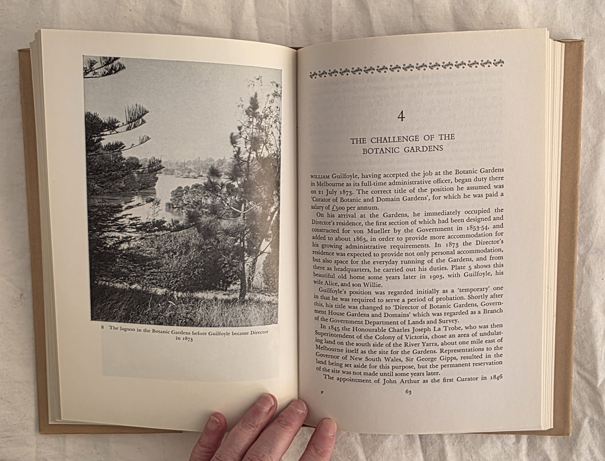 “Melbourne’s Botanic Gardens are famous throughout the world, but few of the thousands of people who visit them each year realize that they are largely the result of one man’s foresight and horticultural skill. W. R. Guilfoyle, the eldest sone of a large emigrant family, gained his early training in Sydney in the middle of the nineteenth century. He had the chance to advance his learning and experience by undertaking a plant collecting expedition to the South Seas in 1868; and spent the following five years in the Tweed River district of northern New South Wales, where his family pioneered the growing of sugar cane and other tropical crops.