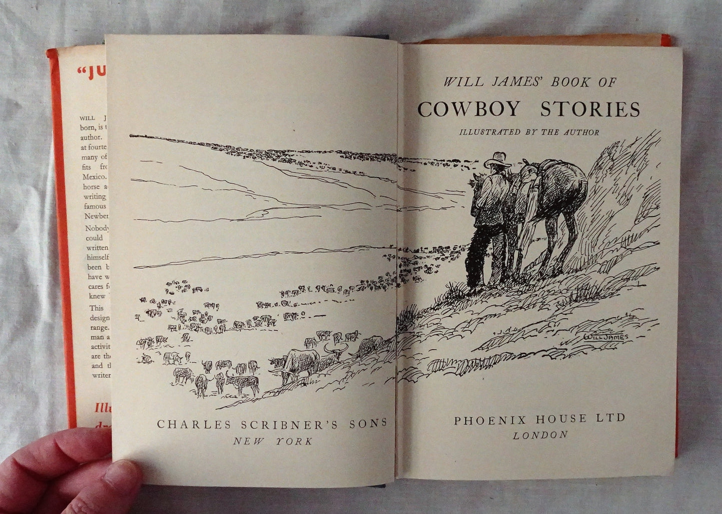 “Will James, Montana born, is the classic cowboy author. An expert rider at fourteen, he trailed with many of the biggest outfits from Canada to Mexico. After a bucking horse accident he began writing and in 1934 his famous ‘Smoky’ won the Newbery Medal.