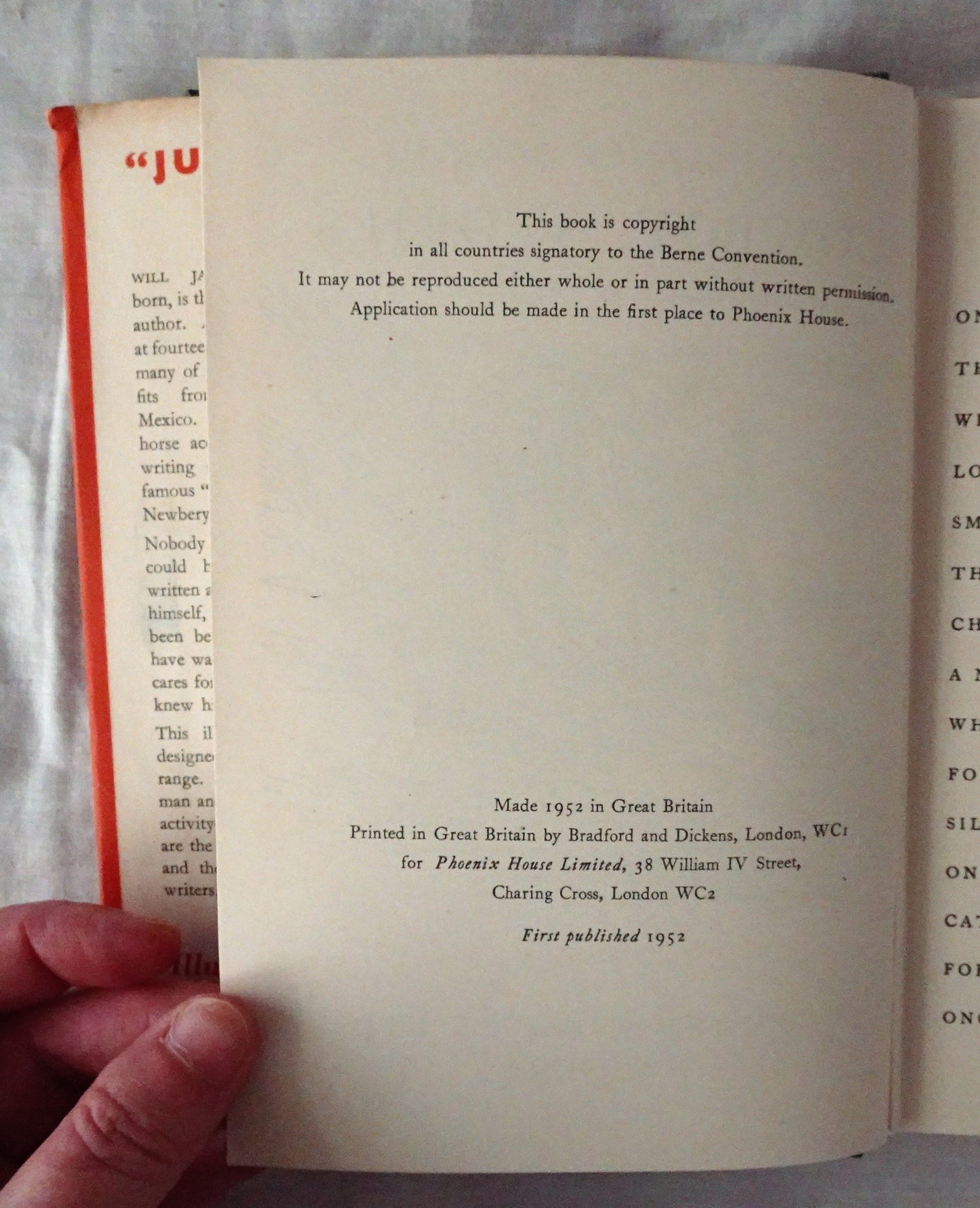 Phoenix House Limited, 1952, [First Edition], illustrated two-page title page, black and white illustrations in text, hardcover, dustjacket